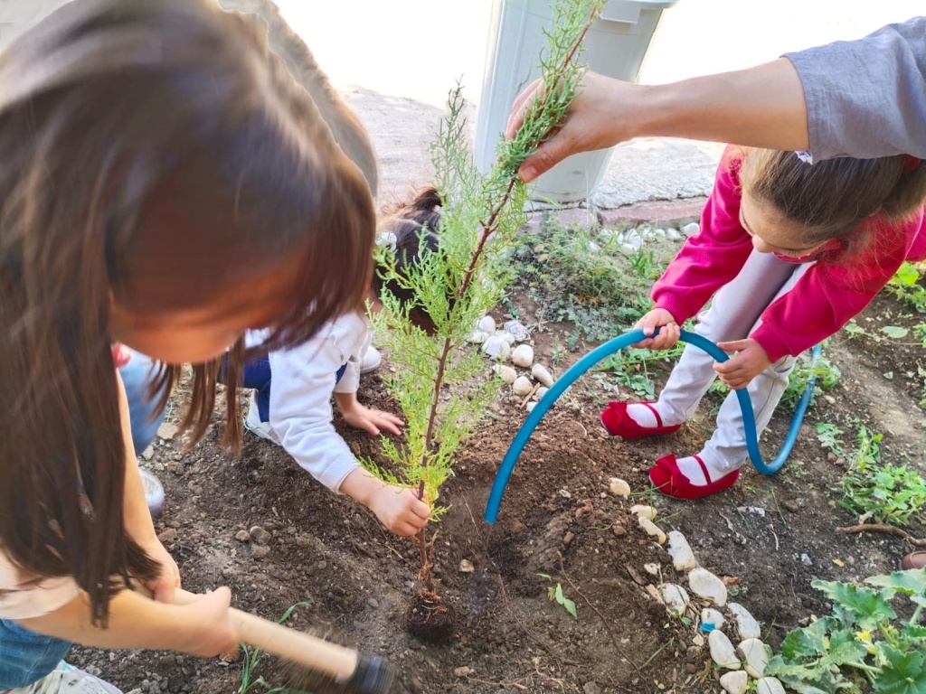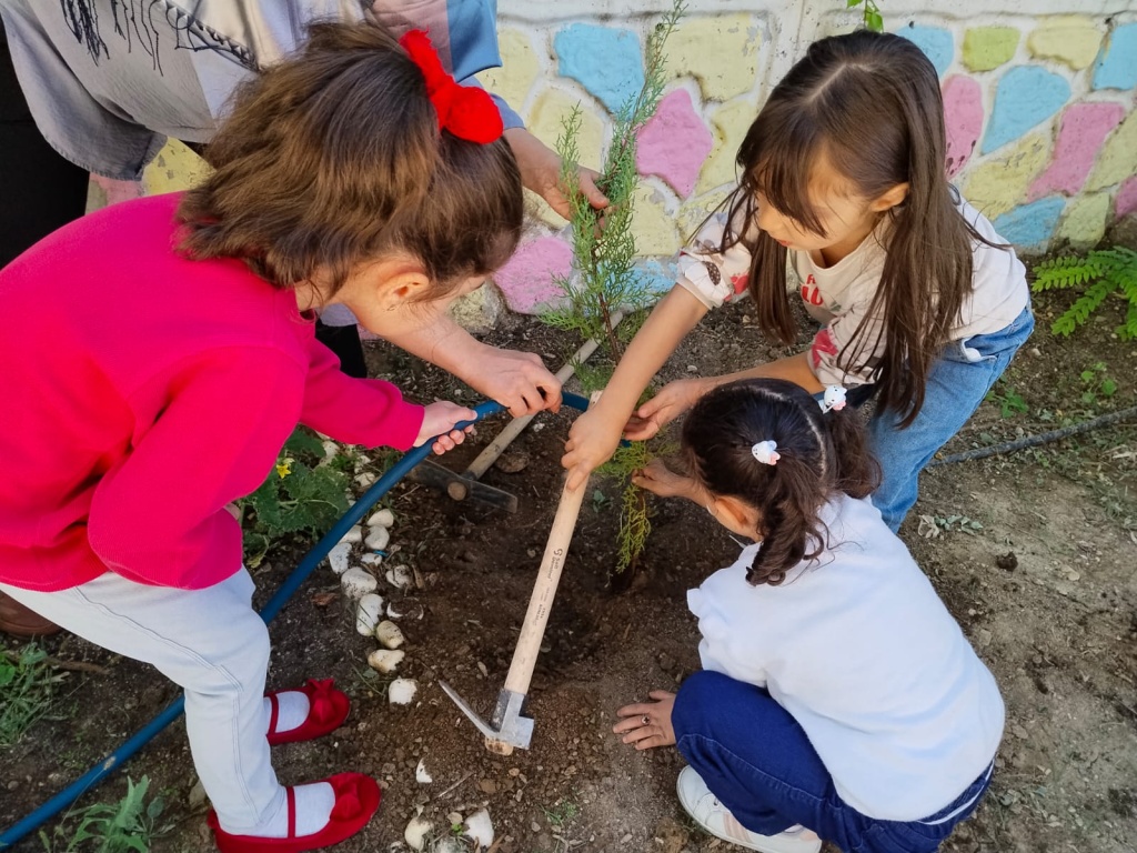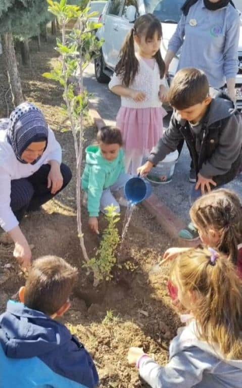 2025-2026 eğitim-öğretim yılı süresince ülkenin her bölgesinde kapsamlı çevre ve sürdürülebilirlik faaliyetlerinin uygulanması hedefiyle, "Yeşil Vatan-Benim Okulum Geleceğe Çare" etkinlikleri okulumuzda hayata geçiriliyor."Türkiye Yüzyılı Maarif Modeli"nin "köklerden geleceğe" şiarıyla öğrencilerin çevreye duyarlı ve sorumluluk sahibi bireyler olarak yetişmeleri esas alınarak "Yeşil Vatan'ı korumak, vatanı korumaktır!" anlayışının, 2025-2026 eğitim öğretim yılı boyunca eğitim kurumlarında hayata geçirilecek tüm etkinliklere yansıtılması amacıyla okulumuz bahçesine çam ağacı ve meyve ağaçları dikimi yapılmıştır.Miniklerimiz kendi meyve ağaçlarını dikmenin haklı gururunu yaşadılar