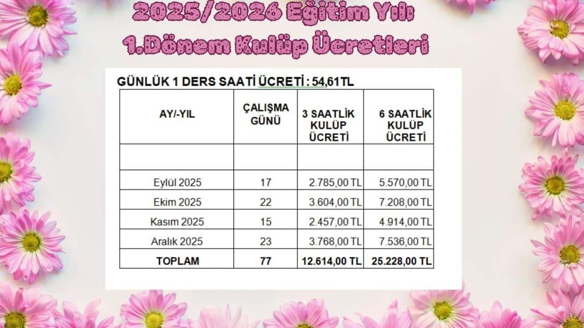 2025/2026 EĞİTİM ÖĞRETİM YILI ÇOCUK KULÜBÜ ÜCRETLERİ BELİRLENMİŞTİR.